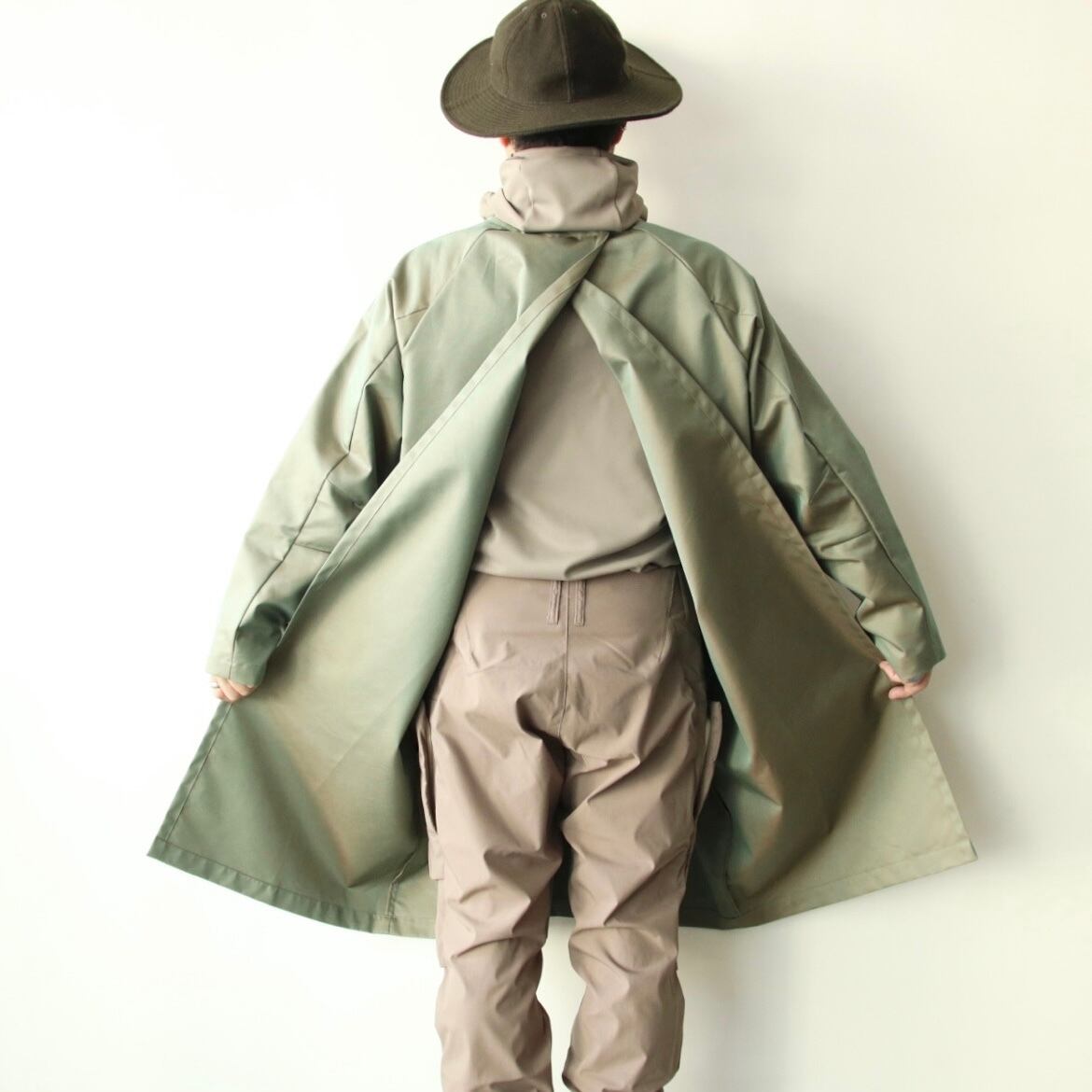 あ、初代エプロンコートのディテールですが、最新のバージョンの物になりますので、最初期に比べると大きめのシルエット、少し長めの丈になります。