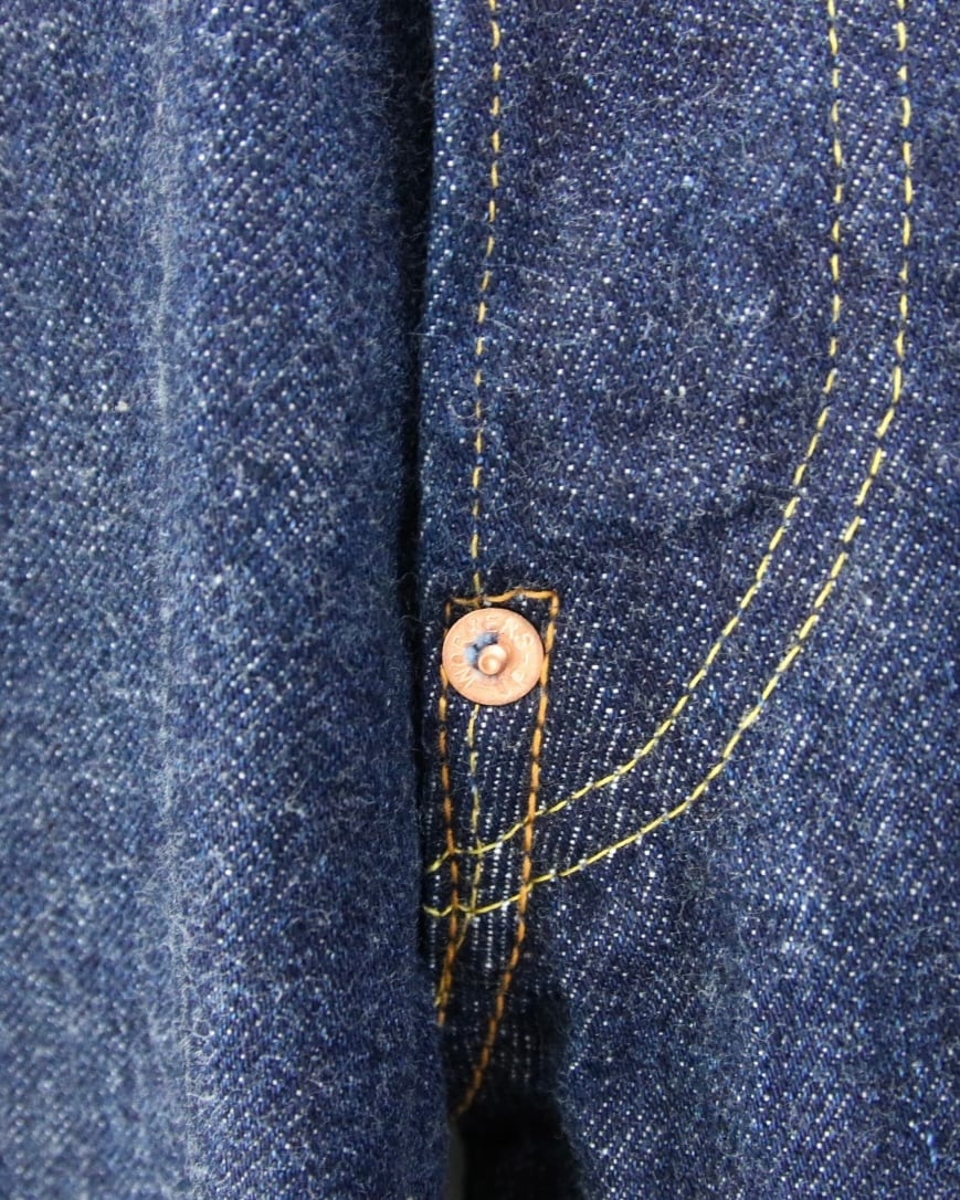 本当は耳に色糸は入れない、白いセルビッチにする予定だったそうですが、工場が半分、色糸を入れてしまったそうで、お店によって、同じジーンズでも、白耳と青耳があるそうです。