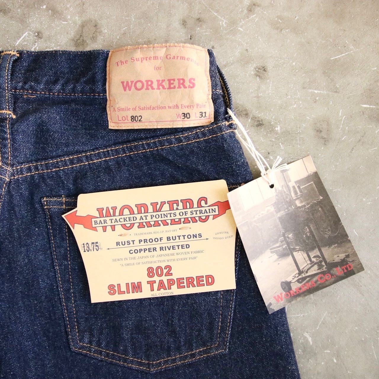*Workers Co., Ltd* Lot 802 Slim Tapered Jeans 13.75oz, Indigo Raw Denim, American Cotton 100% col:INDIGO